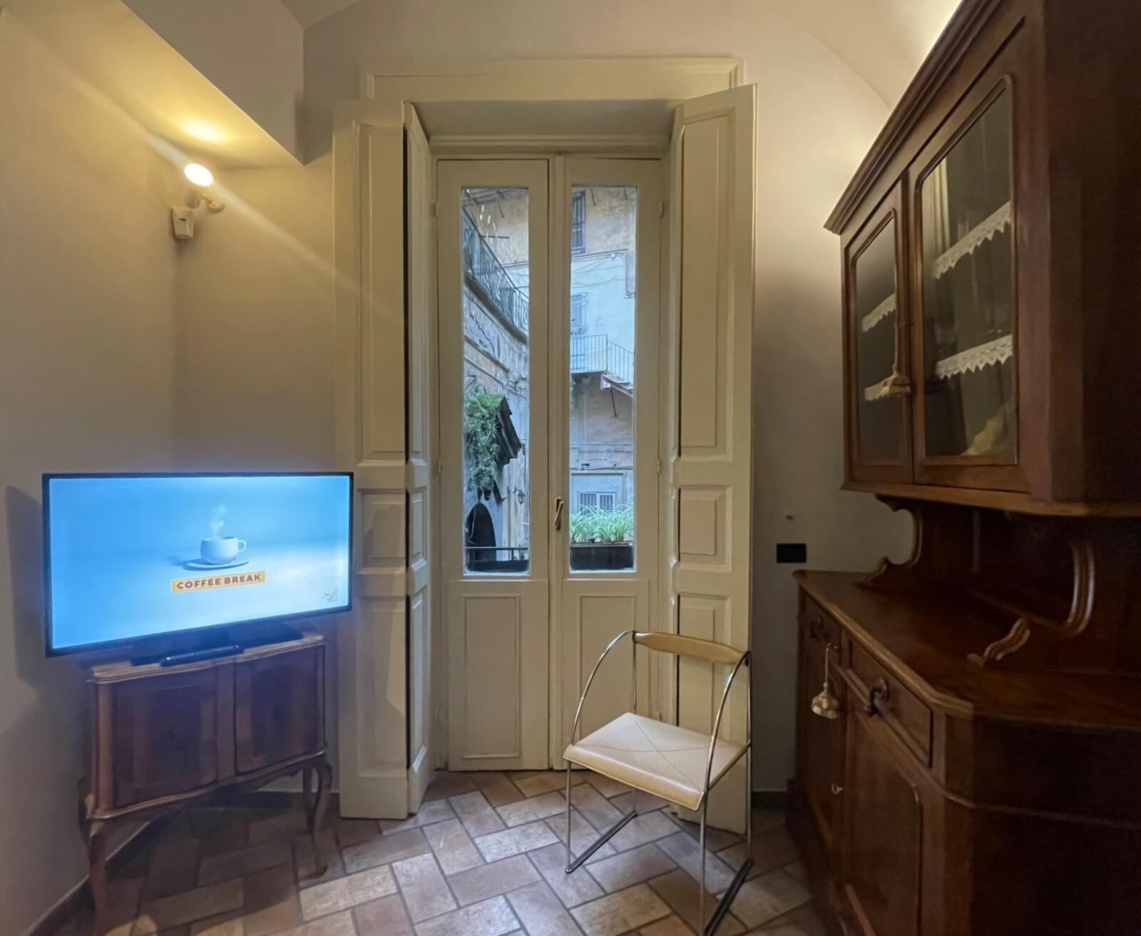 La Suite con balcone si sviluppa su una superficie di 26 mq, con due stanze separate che si affacciano all'nterno del cortile dell’antico Palazzo, di fronte alle scuderie.
