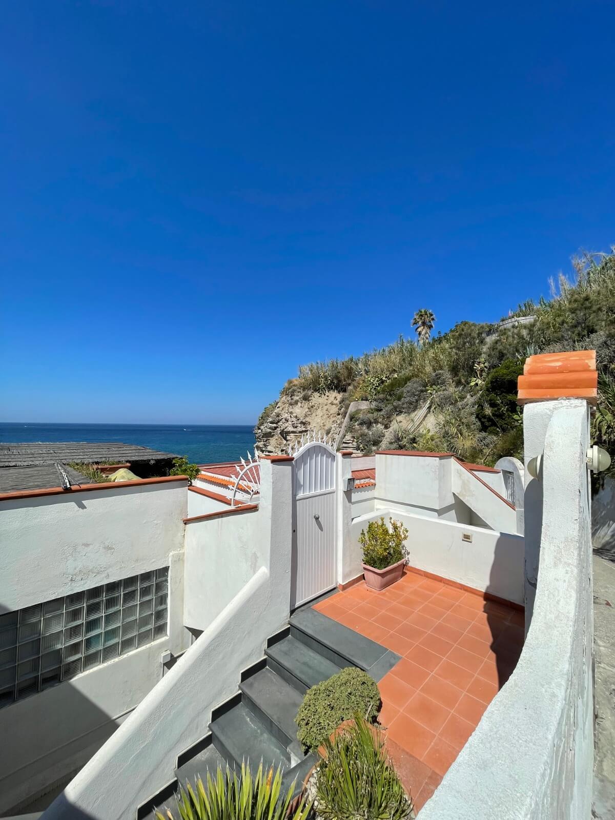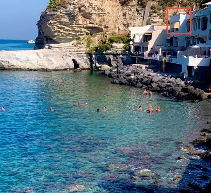 Basta fare pochi gradini per immergersi in una delle baie più belle di Ischia, Citara. Ha una spettacolare vista sulla baia e sul faro che la illumina di notte.